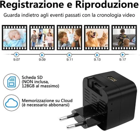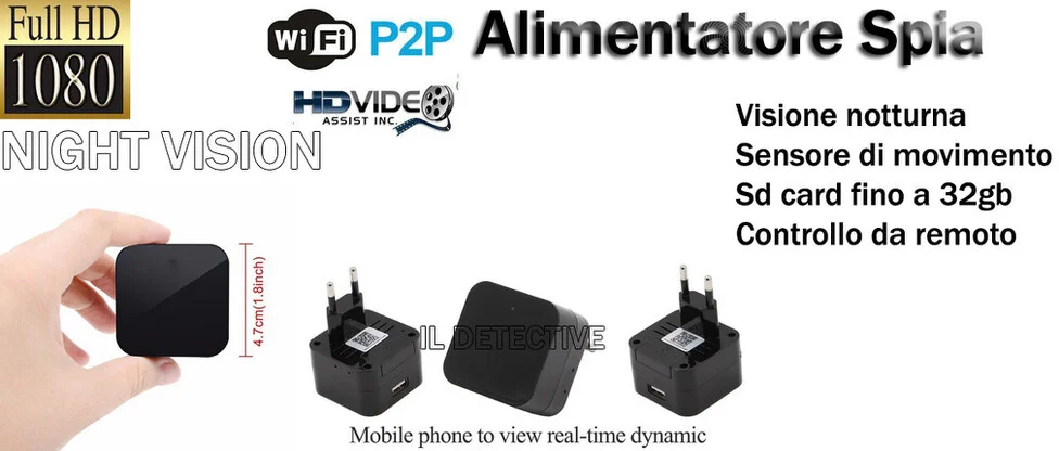 Telecamera spia nascosta, versione professionale ben diversa da tutti gli altri prodotti in vendita su ebay, si distingue per la qualità di immagine in full hd reale, sensore di movimento, attivazione vocale, e trasmissione AUDIO VIDEO in diretta. La telecamera è perfettamente occultata in un comunissimo caricatore da muro usb, funziona anche come caricabatterie per cellulari per non destare sospetti, la sua configurazione è semplicissima, basta scaricare la sua app, connettere il dispositivo alla corrente 220V, e automaticamente crea una rete che sarà subito visualizzata sul vostro telefono o pc, a questo punto basterà fare pochi e semplici passaggi per connetterlo ad una rete internet locale, per far si che trasmetta immagini e audio in diretta da qualsiasi parte del mondo vi troviate.