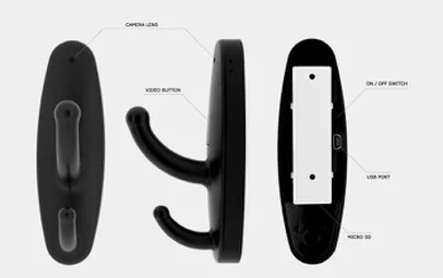 Micro telecamera nascosta in un appendino porta abiti, con definizione HD reale in 720p, una microspia audio video che registra su micro sd card con un autonomia di circa 3 ore in sensore di movimento e 80 minuti di ripresa continua, ideale per monitorare un determinato ambiente durante la vostra assenza. La telecamera è perfettamente nascosta e quindi impossibile da individuare un oggetto di uso comune che quindi passa totalmente inosservato, la memoria interna è espandibile fino a 32gb, ma gia 8gb sono più che sufficienti, si attiva tramite un tasto nascosto sul corpo dell' appendino. Questo utilissimo dispositivo utilizza due modalità di registrazione, uno è il sensore di movimento ciò che una volta avviata la modalità il dispositivo avvierà la registrazione audio video solo in caso di movimento di fronte ad esso, quando il movimento termina la registrazione viene arrestata e quindi torna in modalità di standbye, in alternativa è possibile avviare una registrazione continua fino ad esaurimento della batteria, tale modalità prevede una registrazione di circa 100 minuti di ripresa. Incluso nel kit viene fornito il set vite per il fissaggio a muro