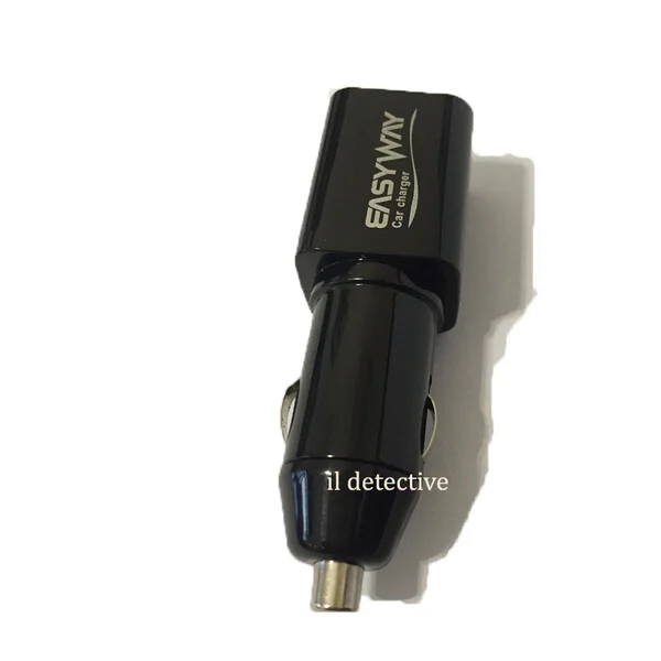 Prodotto assolutamente innovativo, e soprattutto insospettabile, una microspia ambientale gsm nascosta dentro un normalissimo caricatore da auto, con confezione originale priva di ogni riferimento alla funzione spia, quindi un dispositivo che può essere regalato, senza destare sospetto alcuno.