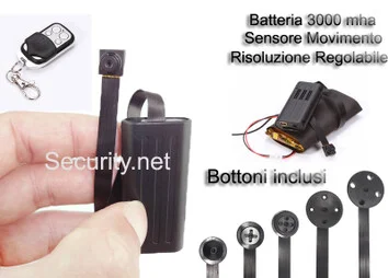 Le telecamere da indossare sono delle piccole videocamere spia con un obiettivo di soli 7 mm di diametro ed hanno incluso nel kit una serie di bottoncini che si applicano sull' obiettivo stesso, in maniera tale da essere applicate e quindi indossate nella giacca oppure in una camicia una volta installata risulta totalmente invisibile e attraverso il telecomando è possibile avviare e interrompere la registrazione. Possono essere nascoste anche l' ambiente e nascoste anche dentro un libro, oppure un quadro facendo un piccolissimo foro installando appunto il micro obiettivo. Ci sono altri modelli di telecamere nascoste in occhiali, oppure orologi da polso con telecamera nascosta ed ancora in penne stilografiche insomma al giorno d' oggi qualsiasi oggetto può nascondere un sistema di videoripresa nascosta senza che nessuno se ne accorga. Se necessitiate di microcamere spia da interni per monitorare ad esempio il vostro apparamento o il vostro ufficio durante le ore di assenza potrete utilizzare delle telecamere spia nascoste ad esempio nelle sveglie orologio da scrivania oppure orologi da pareti che esteticamente sono dei classici orologi e passano del tutto inosservati, in alternativa potete utilizzare anche delle micro telecamere a sensore pir ( rilevamento del calore corporeo) che si attivano solo quando qualcuno entra nella zona sorvegliata, per poi spegnersi quando il soggetto esce dalla stanza, grazie a questo particolare sensore avrete un' autonomia incredibilmente potente fino a 24 mesi di autonomia, queste telecamere sono particolarmente indicate ad esempio per case al mare o in montagna o comunque dove non vi rechiate spesso e quindi anche senza alimentazione potete ottenere molto tempo di autonomia prima che la batteria possa scaricarsi.