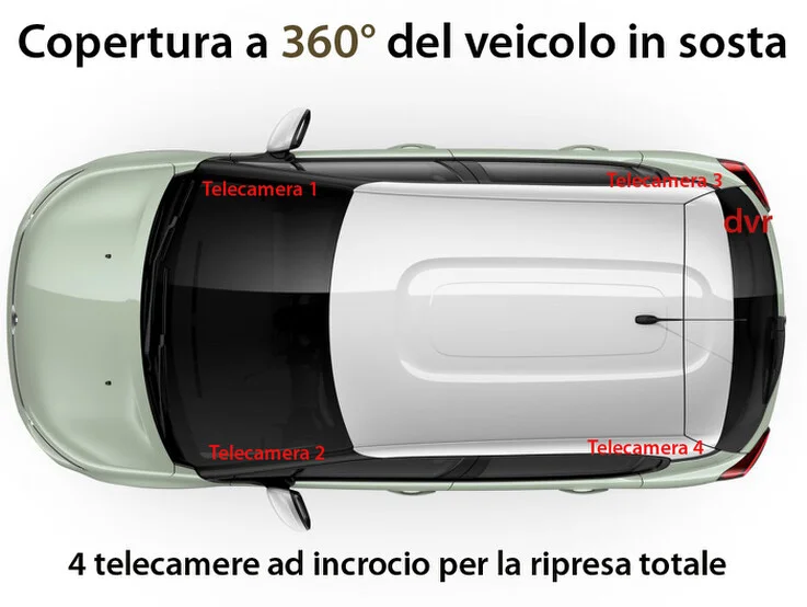Kit interamente progettato dalla nostra azienda che negli ultimi anni si è classificata fra le migliori aziende aziende italiane a livello europeo per la videosorveglianza e sicurezza, grazie a prodotti di tecnologia avanzata assolutamente professionali progettati e assemblati da tecnici specializzati del settore per offrire sempre prodotti di altissimo livello e di massima affidabilità, questo nostro nuovo progetto nasce per via delle innumerevoli richieste e segnalazioni di auto in sosta danneggiate, cercando di venire incontro a tutti i nostri clienti che sono vittime di danneggiamenti continui ai propri mezzi. Questo eccezionale kit è composto da 4 microtelecamere perfettamente nascoste dentro dei classici sensori di allarme in maniera tale da non esser assolutamente notati, dotate di potenti led per la visione notturna chiarissima anche in assenza totale di luce. Le 4 telecamere vengono posizionate in maniera tale da poter avere una visuale perfetta della vostra vettura, ottenendo una visuale completa delle fiancate laterali, visuale anteriore e posteriore.