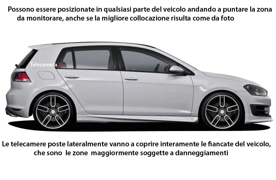 Kit 2 telecamere per difendervi da atti vandalici ed intimidatori, il kit da noi progettato prevede n° 2 telecamere che possono essere collocate laterlamente al vostro veicolo andando a coprire entrambe le fiancate per interno. Fratello del kit completo a 4 telecamere ma comunque un dispositivo che vi permette di mettere in sicurezza la vostra auto quando non siete presenti. Le microcamere hanno una risoluzione di alta qualità con risoluzione HD in 1280*960 registrano in due modalità registrazione in modalità continua, oppure registrazione su movimento. Le telecamere come grandezza sono state ridotte al minimo possibile, sono dotate di potenti led infrarossi invisibili che registrano sia di giorno che di notte, gli infrarossi sono automatici quindi quando la luminosità diminuisce i led si accendono per poi spegnersi quando torna una luce sufficiente a registrare in maniera chiara.