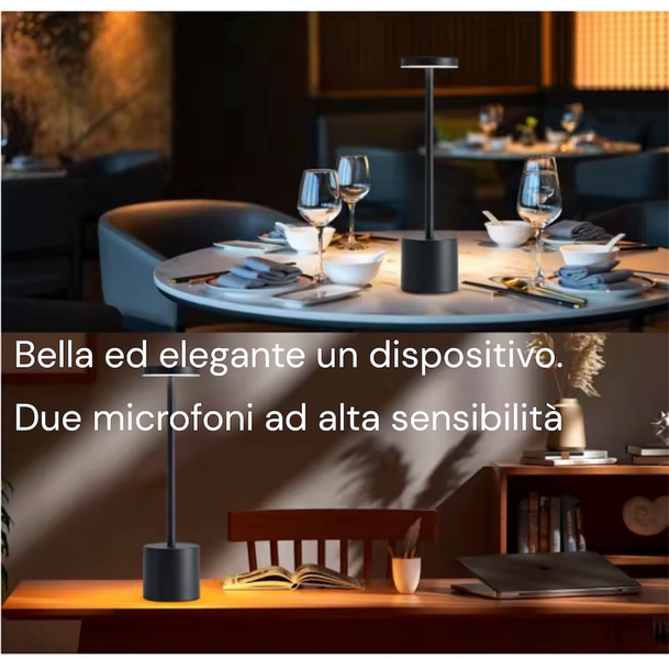 - Audio Bi-Microfonico: Il sistema a doppio microfono cattura conversazioni anche a diversi metri di distanza, filtrando i rumori di fondo.