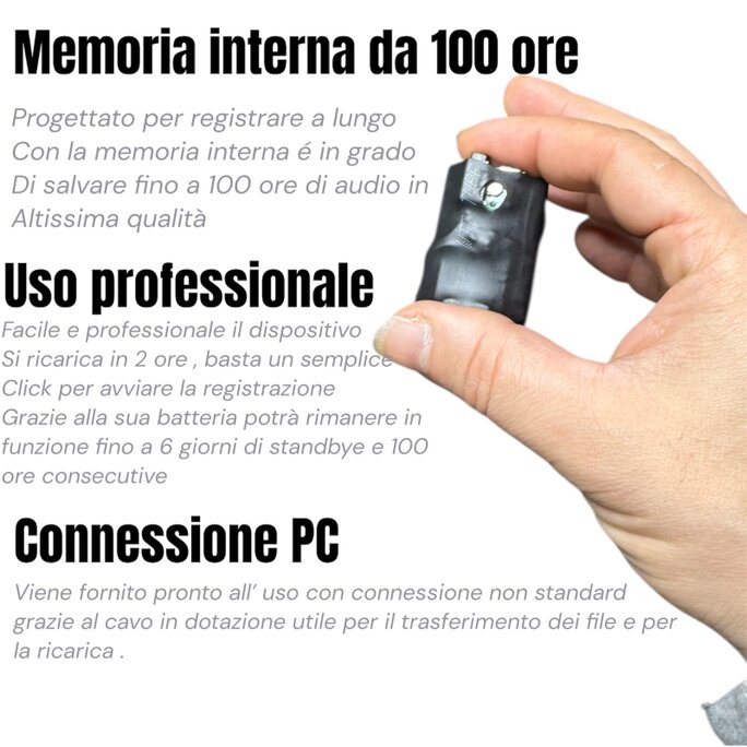 Il nostro mini registratore non è solo piccolo, ma è un concentrato di tecnologia investigativa progettato per l'uso professionale: