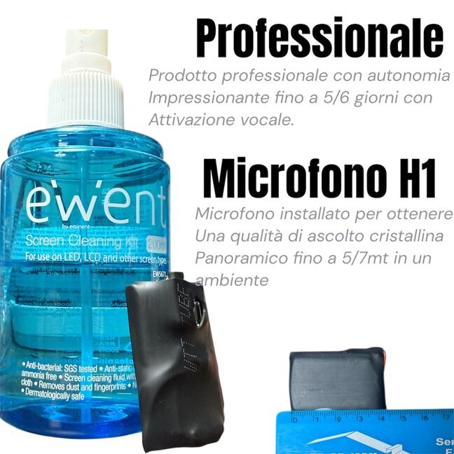 Se cerchi la massima discrezione senza rinunciare a prestazioni di alto livello, il Micro Registratore Vocale Professionale H1 è la soluzione definitiva. Con una dimensione ultra-compatta di soli 4,5 cm, questo dispositivo stabilisce un record assoluto nel settore della sorveglianza audio, offrendo un’autonomia e una qualità sonora paragonabili a dispositivi molto più ingombranti.