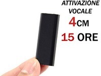 Il più piccolo registratore mai creato sin adesso, solo 3,5 cm di grandezza per ben 60 ore di registrazione con una sola ricarica, dotato di attivazione vocale o registrazione continua, processore suono con riduzione automatica del disturbo microfono panoramico da 10 mt di distanza