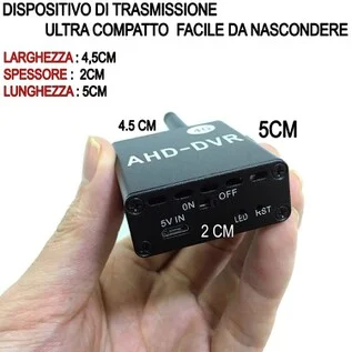 Solo 5 cm di grandezza per il trasmettitore, il più piccolo mai progettato sin adesso, nel trasmettitore si inserisce la sim card, ed una micro sd, per la funzione di registrazione.