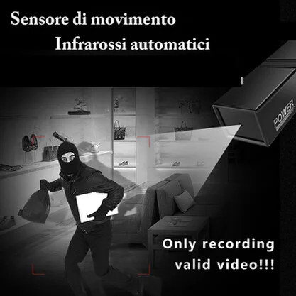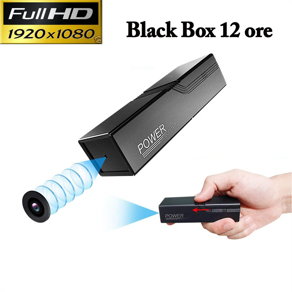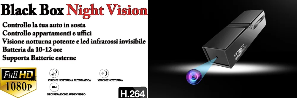 Potente mini telecamera , una perfetta Black box per monitorare in maniera discreta qualsiasi luogo e postazione. La black box è un dispositivo miniturizzato dalla forma discreta si presenta come un rettangolo interamente di colore nero, uno dei due lati ospita la telecamera e 4 potenti led infrarossi del tipo invisibile, quindi anche quando accesi non sono assolutamente visibili. La batteria interna offre un' autonomia in modalità diurna di 12-15 ore e durante la visione notturna di ben 8 ore di registrazione. La registrazione viene salvata su micro sd ( non inclusa ) esprandibile fino a 32gb che contengono circa 7 ore di registrazioni effettive. Registra in due modalità selezionabili dall' apposito tasto, Registrazione continua e Registrazioen su sensore di movimento. Si consiglia sempre l' utiliizzo del sensore inquanto evita di ottenere registrazioni vuote, registrando invece solo quando effettivamente qualcuno si è avvicinato entro un raggio di azione di circa 5 mt.