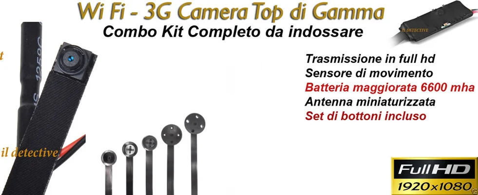 La migliore telecamera spia wifi 3g esistente sul mercato, prodotta direttamente dalla nostra azienda, questo modulo di tramissione audio video rispetto a tutte le altre versioni, nasce per essere alimentata a corrente continua per una videosorveglianza 24 ore su 24, ovviamente supporta anche batterie esterne quali power bank per lavorare in autonomia incluso nel kit offriamo una batteria da ben 4000 mha che garantisce circa 6 ore di tramissione video, questa telecamera professionale è stata creata per venire incontro alle richieste dei clienti ovvero di avere una ip camera spia ultraminiaturizzata senza preoccuparsi che la batteria si scarichi, la microcamera installata è una vera e propria cctv ad alta definizione con un gradangolo da 180°, è possibile inserire micro sd fino a 32gb per la registrazione, il cavo telecamera lungo circa 20 cm ultra sottile permette di essere occultato con facilita' estrema e la telecamera ha in diametro di circa 0,7MM e di essere indossata come un bottone. Eccezzionale sia la trasmissione monitor e testi scritti per la videosorveglianza di casa o del tuo ufficio, trasmette immagini in diretta senza emettere alcun suono, registrazione su comando o automatico su movimento. Una microcamera seria per tutti coloro che sono stufi di acquistare giocattoli spacciati per professionali. Il dispositivo viene fornito con kit completo di cavo usb per l alimentazione a qualsiasi alimentatore usb( anche quello di un cellulare va bene). ed una batteria da 4000 MHA.