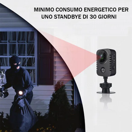 Il sensore di movimento ultra sensibile del dispositivo permette di risparmiare notevole spazio su sd card, ciò significa che registrerà solo ed esclusivamente quando qualcuno entrerà nella zona sorvegliata per poi tornare in standbye quando il movimento termina salvando il filmato registrato sulla memoria sd.