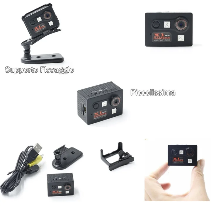 1 staffa di supporto1 cavo per ricarica e collegamento a batterie esterne o collegamento a pc per lettura video