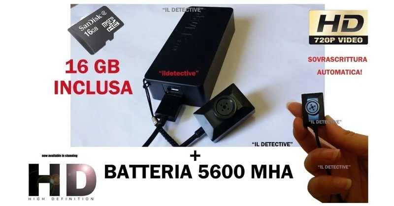 Piccola telecamera 720P nascosta con bottone intercambiabile, dispositivo semplice da occultare grazie al suo cavo creato appositamente allungato, di circa 1mt, in modo tale da essere sia occultato in un ambiente, nascosto fra oggetti già presenti nell' ambiente, oppure indossandolo come un semplice bottone della giacca o camicia...
