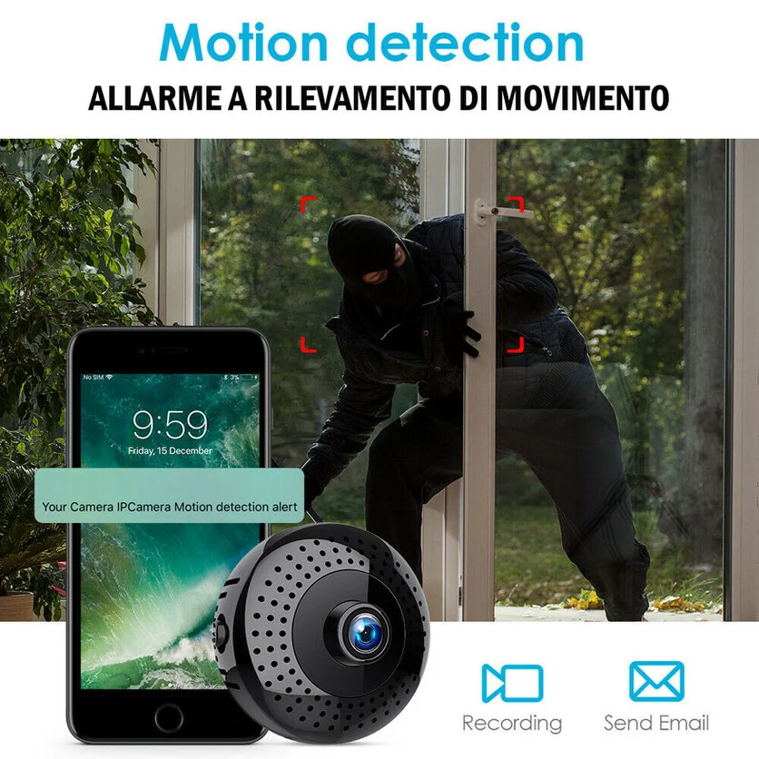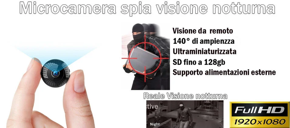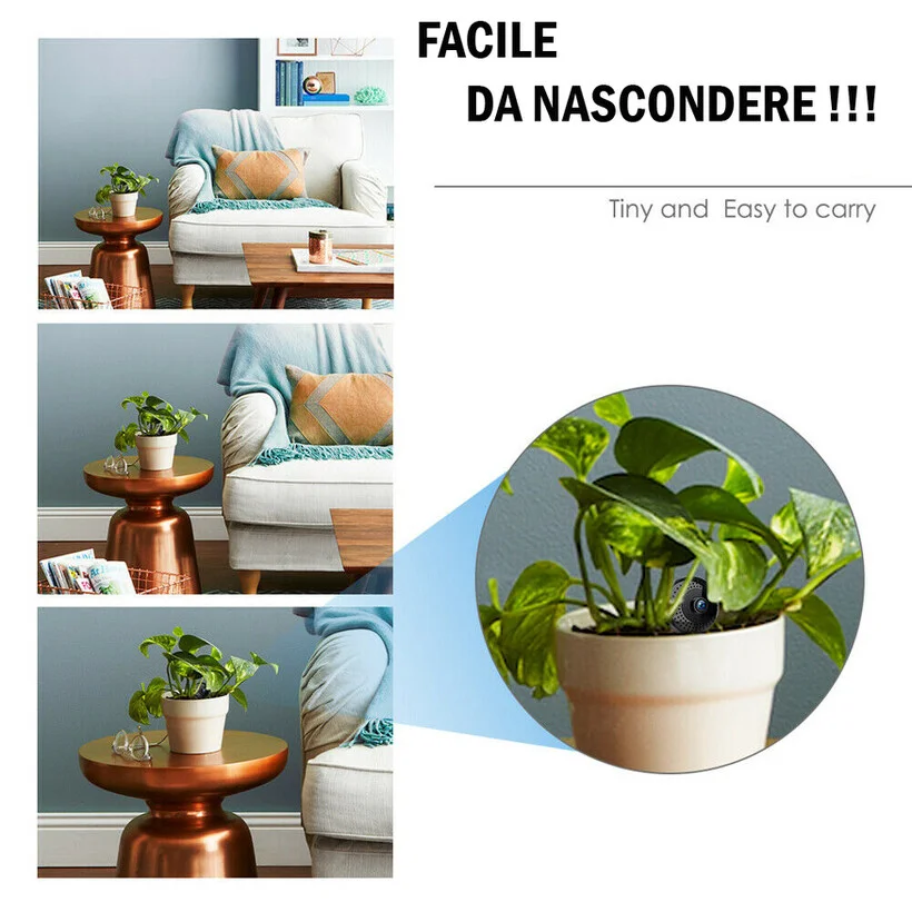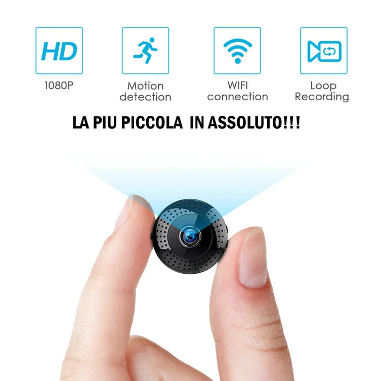 Fra le più piccole al mondo, con WiFi integrato che permette di collegarvi a distanza osservando e ascoltando in diretta cosa accade nell' ambiente circostante. Supporta la registrazione automatica su micro sd espandibile fino a 128gb. Batteria integrata da circa 90 minuti di autonomia ma può essere alimentata con batterie esterne come power bank oppure direttamente a corrente elettrica 220v. Funziona con applicazione dedicata compatibile per IOS e ANDROID, facile configurazione l' app dedicata permette di personalizzare tute le funzionalità della micro camera, dalla qualità visiva alla modalità infrarossi, permette di registrare sia su modalità con sensore di movimento oppure su modalità continua-