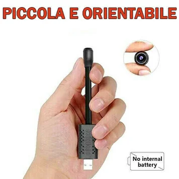 Piccola telecamera a visione remota grazie alla scheda wireless di cui essa è dotata, dopo una semplice configurazione la telecamera sarà visibile da qualsiasi parte del mondo, il tutto in diretta, con trasmissione audio e video in tempo reale. La microcamera è composta da un braccio snodabile che permette il posizionamento in base alle vostre necessità, il tutto per semplificare l' installazione della stessa al fine di poter con precisione puntare alla zona di vostro interesse. L' obiettivo quadrangolare ha un ampiezza di ben 120° quindi un capo di visuale molto ampio nonostante le sue piccole dimensioni. La possibilità di alimentare esternamente la micro telecamera è un punto di forza di tale dispositivo, inquanto potrete alimentarla sia a corrente continua per una videosorveglianza 24 ore su 24, oppure con i classici power bank reperibili in qualsiasi negozio di elettronica.
