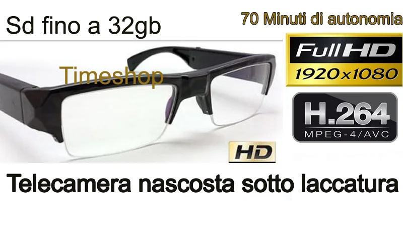 Siamo lieti di presentarvi la miglior versione esistente sul mercato italiano dei classici occhiali spia, in questa nuova versione per la prima volta nessun foro sulla montatura che nasconda la telecamera, in questa versione progettata con cura, la telecamera è intelligentemente occultata direttamente dietro il vetro della montatura, e posta al centro delle lenti per rendere al meglio la facilità di registrazione. Qualsiasi cosa voi andrete ad osservare sarà registrata con una precisione impressionante, e soprattutto con una qualità audio-visiva senza paragoni nel settore.