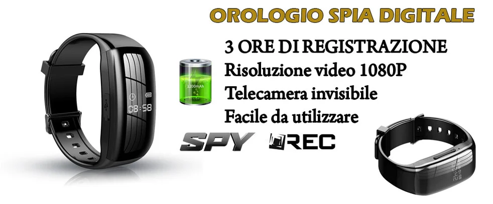 Orologio spia con telecamera nascosta di ultimissima generazione che offre delle caratteristiche assolutamente introvabili in oggetti simili. La prima caratteristica unica è il suo aspetto esteriore che si mostra come un elegantissimo e normalissimo orologio digitale dotato di un display comodo per la personalizzazioni della funzionalità orologio, ma andando al punto cardine del dispositivo si distingue per la capacità di autonomia della batteria interna, ovvero il primo orologio con telecamera in grado di registrare fino a 3/4 ore di registrazione, una caratteristica ben diversa dagli altri modelli in commercio che si fermano al massimo a 60 minuti di autonomia.