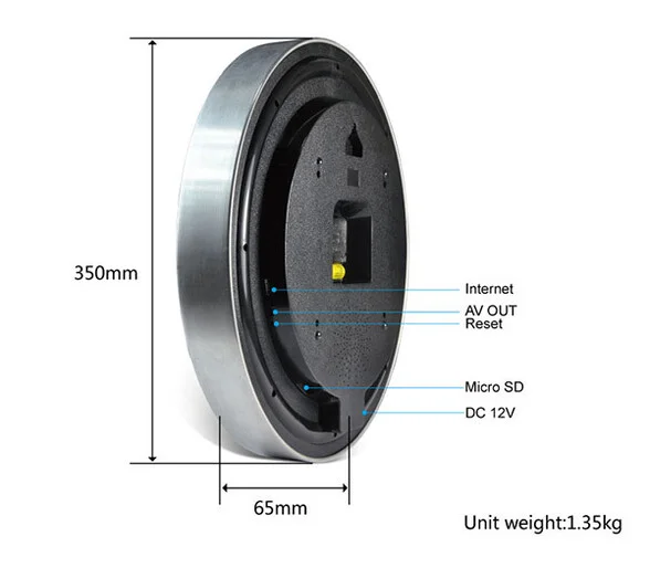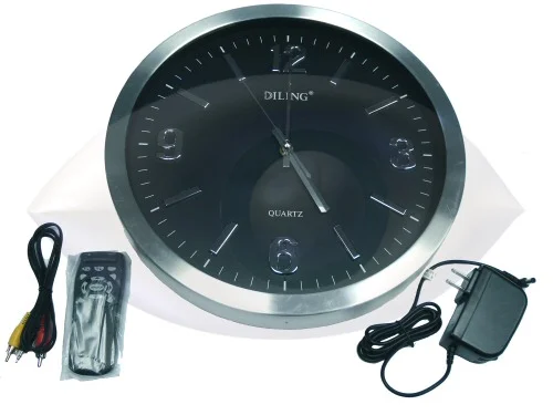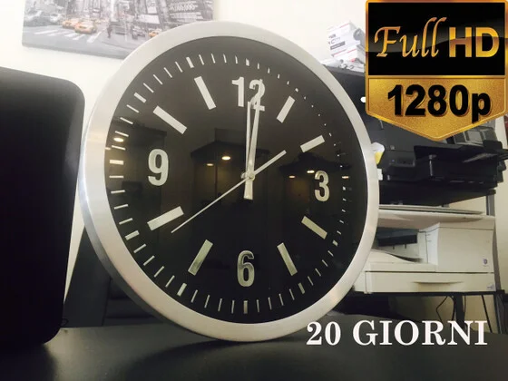 Orologio da parete, con una telecamera magistralmente occultata al suo interno, il diametro è pari a 30cm, ciò significa " assolutamente realistico" e impossibile da dar sospetti, in realtà oltre a sembrare un bellissimo ed elegantissimo orologio, integra un vero e proprio dvr, che permette la registrazione audio video in alta definizione pari a 1280P.