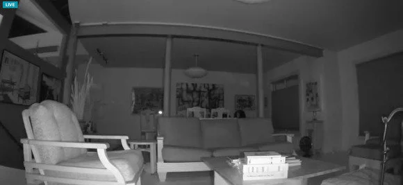 Super Night VisionEsempio di ripresa in totale buio, come potrete notare nonostante l' ambiente sia abbastanza grande i led infrarossi riescono ad illuminare sino infondo all' ambiente, si precisa che i led anche se accesi non sono visibili all' occhio umano, i led sono automatici, ovvero quando la luminosità dell ' ambiente diminuisce i led si accendono per poi spegnersi quando torna la luce.