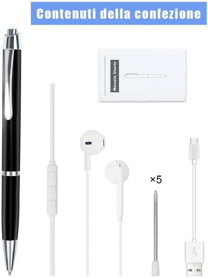 - 【Registrazione ad Attivazione Vocale】- Il dispositivo registrerà soltato dopo aver rilevato un suono superiore ai 45dB. Micro registratore vocale, penna per scrivere, lettore MP3, USB 4 in 1 funzione. Basta premere il pulsante per registrare quello che vuoi, Musica, Lezioni, Riunioni, Interviste.