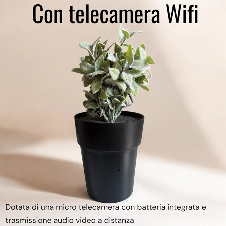 Proteggere ciò che ami non è mai stato così semplice e invisibile. A prima vista, sembra una comune pianta artificiale da interno, perfetta per decorare una mensola, un ufficio o il soggiorno. In realtà, al suo interno si nasconde un concentrato di tecnologia: una micro-telecamera Wi-Fi professionale capace di trasmettere audio e video in tempo reale direttamente sul tuo smartphone, ovunque tu sia.