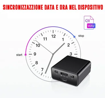 Il dispositivo memorizza per ogni registrazione effettuata a data e l' ora, quindi sapremo sempre l' orario in cui un determinato avvenimento è stato registrato dal dispositivo. Un aspetto importante che rende valide anche sotto il punto di vista legale le registrazioni effettuate dal dispositivo.
