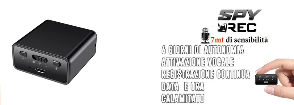 Registratore miniturizzato con delle caratteristiche eccezionali, il micro recorder con una sola ricarica riesce a registrare per ben 6 giorni di autonomia senza esser ricaricato. Il micro registratore è dotato di un microfono ultra sensibile e potente calamita che permette di poterlo agganciare a qualsiasi superficie metallica in modo saldo. Possibilità di registrazione in due modalità, Registrazione continua i Registrazione ad Attivazione Vocale. Memoria interna integrata da 16gb che permette di immagazzinare una grosse mole di dati ( circa 300 ore di audio). La semplicità di utilizzo è il punto forte di questo mini registratore professionale, tramite il tasto posto in uno dei lati è possibile avviare la registrazione nella modalità desiderata, quindi basta un semplice click affinchè il registratore inizi la registrazione.