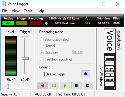 L' installazione è semplice ed intuitiva, come da foto potrete notare la facilità delle impostazioni, e regolare la sensibilità del vox e il volume di registrazione, un prodotto altamente professionale, utile per vari scopi, da quello utile per ottenere prove contro infedeltà oppure per registrare cosa accade nella vostra azienda oppure ufficio durante la vostra assenza. Il dispositivo utilizza in maniera nascosta il microfono di ogni pc portatile e fisso ( accertarsi che il pc sia munito di microfono anche quello della webcam vabene) ed in maniera anonomia lo utilizza al fine di registrare. E' totalmente invisibile agli antivirus e non lascia nessuna traccia è un prodotto sicuro al cento per cento.