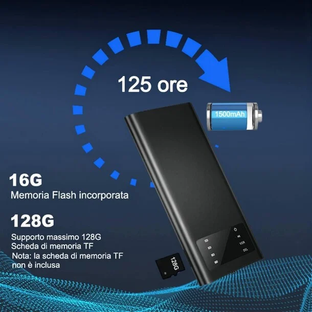 A vedersi sembra un comune power bank, un oggetto di comune e diffuso utilizzo, totalmente insospettabile, in reatà integra un micro registratore audio professionale, nascosto al suo interno. Memoria integrata da 16gb, per oltre 200 ore di audio, ed una batteria a lunga autonomia che permette di ottenere un autonomia in funzione di circa 5 giorni consecutivi.