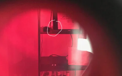 Rilevamento obiettivi telecamere nascoste Come potrete notare dalla foto a sinistra evidenziata c'è una micro telecamera e l' obiettivo viene illuminato e messo in risalto rispetto all' ambiente, tale modalità viene sfruttata da una lente ad infrarossi con illuminatori che permettono con una facilità estrema di distinguere gli obiettivi anche se nascosti dentro oggi, ad esempio quadri, sveglie, e qualsiasi altro microforo fatto artificialmente in maniera da nascondere la microcamera. Questa è una funzionalità eccezionale inquanto le micro telecamere sono acquistabili facilmente online ed al giorno d' oggi quindi è semplicissimo installare tali apparati.