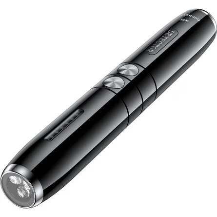 Tramite l' apposito tasto potrete attivare la modalità infrarossa, che permetterà di mettere in risalto i micro obiettivi occultati mostrandovi l' esatta posizione. Il particolare LED illumina in maniera visivamente importante gli obiettivi di colore viola mettendoli in risalto nell' ambiente e quindi rendendo semplice la localizzazione anche di micro camere dvr che non emettono segnali, anche quando in stato di standbye e quindi non attive.