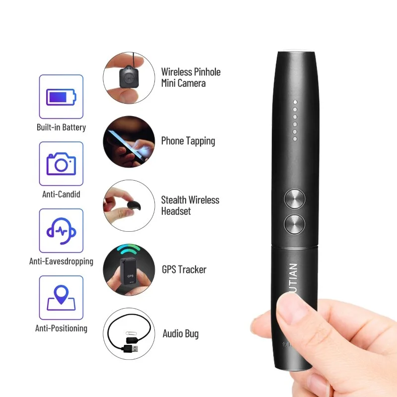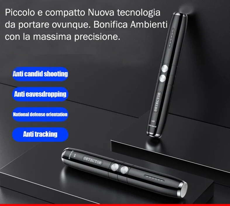Nuovissimo Rilevatore di microspie portatile, un dispositivo efficiente che integra tutte le funzionalità di Rilevatori di alto costo in un dispositivo di dimiensioni ridotte che quindi è possibile portare con se in ogni luogo. Rileva qualsiasi forma di microspia, che sia GMS, Wi-Fi, 3G, 4G, 5G, UMTS, mini localizzatori e microspie a trasmissione in genere. Grazie al laser infrarosso di cui è dotato è possibile individuare anche micro telecamere nascoste.