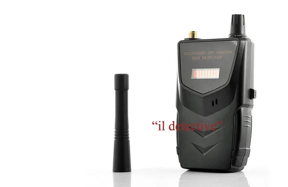 di moltissimi apparecchi spia in circolazione al momento, fra i quali quelli piu' sofisticati, inquanto gode di un software interno di ultima generazione. Eccellente prodotto per chi lavora nelle investigazioni o per chi voglia tutelarsi. Grazie alla sua estrema sensibilità è adatto per bonifiche professionali, la sua antenna è in grado di percepire un altissimo numero di segnali sospetti provenienti da apparecchi spia fino a 20 mt di distanza, grazie ai suoi led di indicazione che gradualmente si illuminano, ci accompagnano fino ad indicarci il luogo esatto dove vi è segnale di trasmissione sospetta.