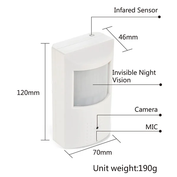 Telecamera nascosta in un comune sensore infrarossi, un oggetto di uso comune quindi installandolo nel vostro appartamento o ufficio passa del tutto inosservato, nessuno può immaginare che in realtà sia una microcamera spia nascosta a visione notturna, e soprattutto in grado di trasmettere in diretta audio video da qualsiasi parte del mondo vi troviate.