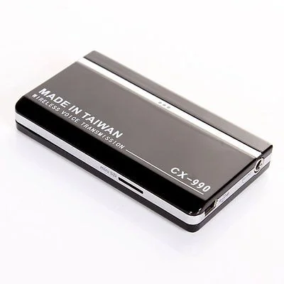 Microspia ambientale wireless di assoluto livello professionale, il dispositivo si divide in due parti, una microspia ambientale wirelesse che trasmette l' audio foIrte e chiaro direttamente al ricevitore fino ad una distanza di 150 mt , ed il suo ricevitore che permette di ascoltare in cuffia in diretta, nel ricevitore è possibile inserire una micro sd espandibile fino a 32gb ed all' occorrenza basta cliccare sull' apposito tasto di registrazione per iniziare a registrare. Il ricevitore permette inoltre oltre l' ascolto in diretta, il riascolto delle registrazioni effettuate, tali registrazioni possono essere facilmente spostate sul vostro pc.