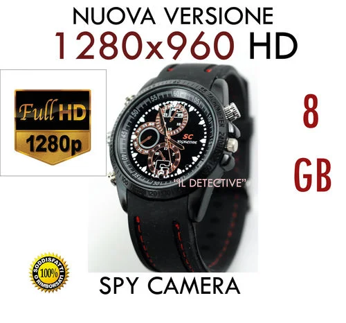 L'orologio sport spia audio video è comune orologio da polso ma al suo interno integra una telecamera nascosta e microfono, consente di registrare filmati audio video a colori in formato AVI con risoluzione video di 1280*720 pixels a 30 fotogrammi al secondo, scattare foto in formato JPEG con risoluzione 1280X1024 pixels e registrare audio (registratore vocale) in formato WAW.
