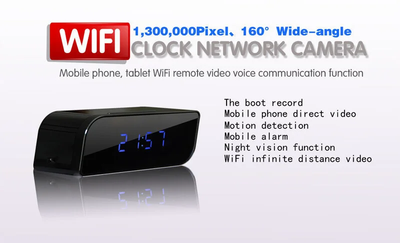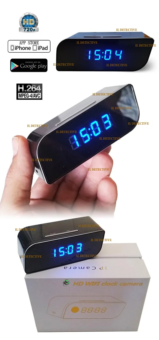 Nuovissimo dispositivo spy, una microtelecamera a colori installata in un bellissimo ed elegante classico orologio sveglia digitale, a differenza dei comuni dispositivi spy questa versione è dotata di una scheda Wi-Fi, che una volta collegata alla rete, (operazione semplicissima grazie all' applicazione gratuita scaricabile dallo store Android o apple store) è possibile vedere il diretta l' ambiente in cui essa è installata, ed ascoltare in maniera discreta ciò che accade intorno.