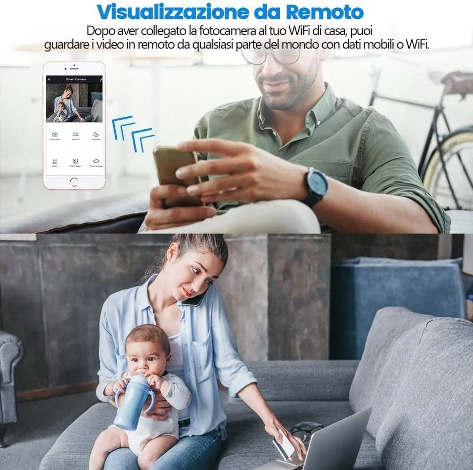 Basta scaricare l' app gratuita della microcamera ed eseguire dei semplici passaggi per connettersi in diretta ed osservare anche se vi trovate a migliaia di km di distanza dalla micro telecamera.