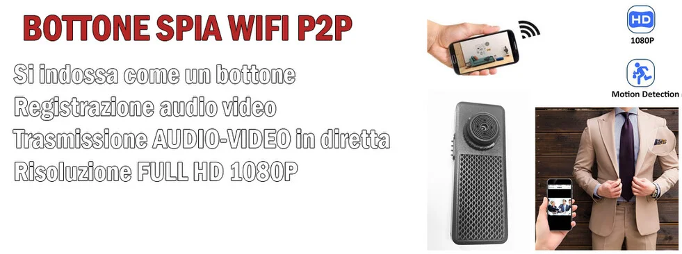 Nuova telecamera spia da indossare, all' apparenza un classico e normalissimo bottone ma integra un micro obiettivo ad altissima risoluzione che permette di trasmettere le immagini che si hanno di fronte ad una persona situata anche a centinaia di km di distanza. Vista la sua forma estetica è assolutamente invisibile ed impossibile da individuare. Può essere indossato su una camicia, su una maglietta polo, o una giacca il tutto con una semplicità estrema. Il dispositivo si configura in modo semplice bastano pochi passaggi chiaramente descritti nel manuale italiano che troverete all' interno della confezione per essere pronti ad utilizzarlo in meno di 5 minuti. Oltre alla funzione di trasmissione permette di registrare su micro sd, è possibile inserire micro sd fino a 128 gb che immagazzina fino a 10 giorni di registrazione.